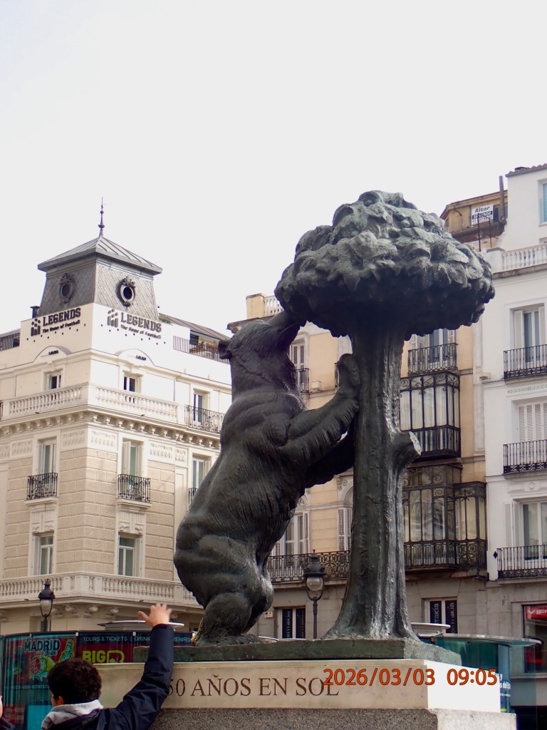 I arrived at my hostel at 3pm, exhausted from only 3.5 hours of sleep on the plane (I require like 10+) and dripping sweat from trekking my bags onto public transit and walking two miles. After a much needed shower and fresh clothes, I found myself in Puerta del Sol admiring El Oso y el Madrono (bear and strawberry tree statue represented in the crest of Madrid) and Km 0 (marks center of the city’s radial road system).